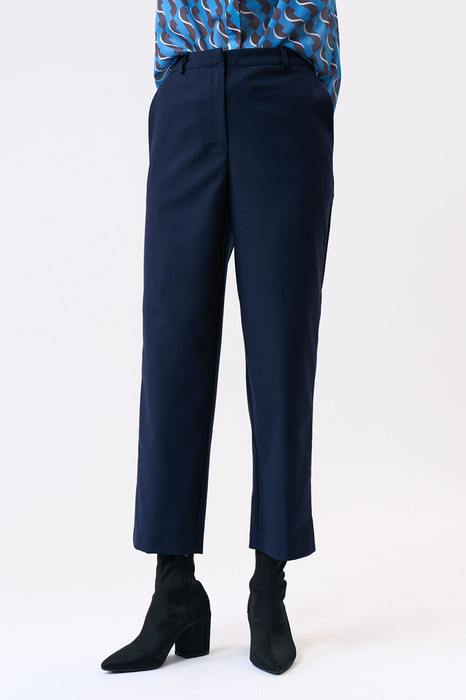 Брюки полупригающего силуэта заужены к низу, с карманами. Брюки на притачном поясе с застёжкой на молнию и крючок. Возможно отличие фотографии по оттенку, связанное с разной цветопередачей монитора.