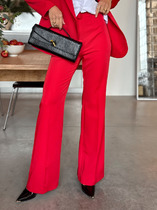 Эти брюки станут глотком свежего воздуха среди широких силуэтов и брюк палаццо. Их облегающий крой подчёркивает линию бедёр и тали, а затем изящно расклешается от колена.Такой фасон позволит скорректировать фигуру и подойдёт для строго дресс кода. Вертикальные линии по центру брючин вытягивают силуэт и удлиняют ноги. Застёжка классическая - молния и пуговица в цвет изделия.