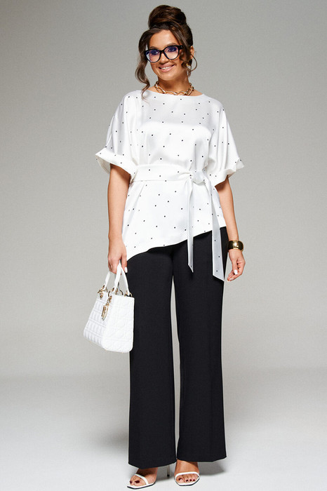 Брюки выполнены из ткани «французский креп», которая красиво струится и имеет очень легкий стрейч.