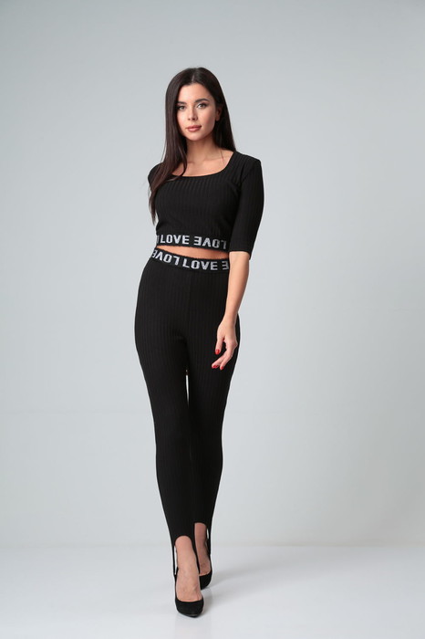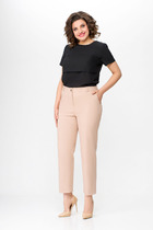 Брюки из трикотажного полотна , зауженные к низу со штрипками. По талии пояс из декоративной эластичной тесьмы.