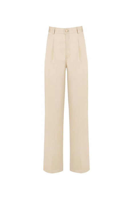 Брюки женские, зауженные к низу, длиной до щиколотки. По передним половинкам брюк фигурные боковые карманы и складка с отделочной строчкой. Задние половинки брюк с кокеткой и накладными карманами. Брюки с притачным поясам и шлевками, застежка на тесьму-«молния» и петлю с пуговицей. В нижней части брюк -вытачки.
