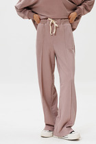 Брюки-палаццо выполнены из костюмной ткани. Брюки на притачном поясе, длиной в пол, по бокам лампасы из основной ткани, складки и боковые карманы. Застежка спереди на молнию. Передняя и задняя часть брюк заутюжены на кант.