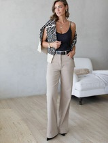 Брюки выполнены из тонкой искусственной замши. Брюки прямого покроя длиной в пол, на притачном поясе с эластичной тесьмой. Спереди боковые карманы с наклонным входом.