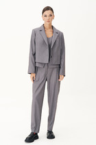 Брюки классического кроя с высокой посадкой на притачном поясе со шлёвками. Застежка брючная на потайной крючок и молнию. Передние половинки брюк с мягкой складкой-защипом и наклонными боковыми карманами. Задние половинки брюк с талиевыми вытачками и прорезными карманами с листочками.