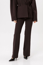 Брюки без пояса, расширенные к низу, по внутреннему срезу верхнего края расположена резинка. По переднему и заднему полотнищу брюк- талиевые вытачки. По талиевым вытачкам переда- декоративные пуговицы.