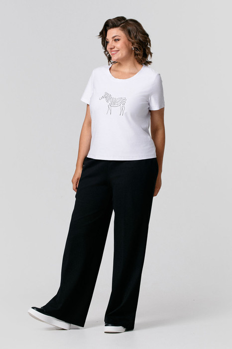 Брюки прямые из плотного трикотажа с завышенной линией талии и притачным поясом на резинке, в боковых швах карманы. Изделие прошло тестовую стирку при температуре 30 градусов и химическую чистку: не теряет форму.