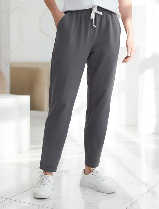 Состав: 95%Хлопок 5%ПУ Плотность: 240 Г/м2Брюки выполнены из тонкого хлопкового футера. Эластичный материал хорошо пропускает воздух, позволяя телу дышать, и легко тянется, не ограничивая движения. Пояс на резинке дополнен внутренним шнуром, для комфортной регулировки изделия. Брюки сочетаются в костюме с джемпером D49.054 и D49.055