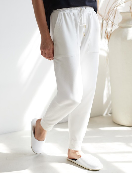 Состав: 95%Хлопок 5%ПУ Плотность: 240 Г/м2Брюки выполнены из футера двухнитки с эластаном. Модель зауженная к низу дополнена карманами и эластичным поясом с фактурой в рубчик. В пояс вставлен плоский хлопковый шнур в тон изделия с золотистыми наконечниками. Изделие дополнено металлическим логотипом бренда. Сочетается в костюме с жакетом D49.078, джемпером D49.079, D49.080 и футболкой D49.081