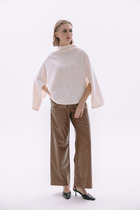 Брюки свободного кроя из экокожи на байке, верхний срез представлен широкой декоративной резинкой. Длина брюк 101 см