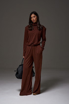 27.03 Vilatte Брюки палаццо широкие из струящегося сатина D24.304 бургунди