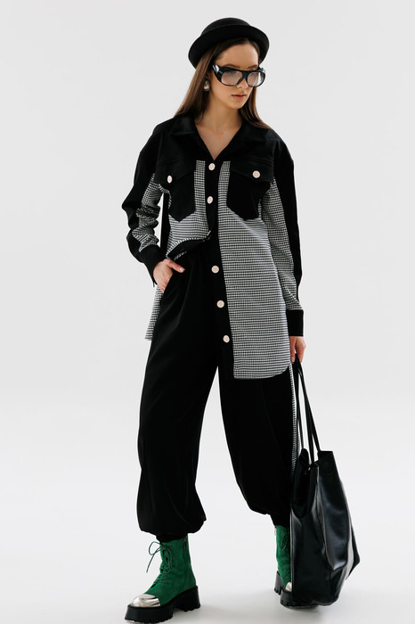 Брюки NIKVA н727-1 чёрный+чёрно-белая гусиная лапка