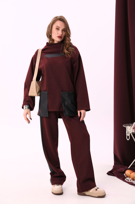 Брюки NIKVA н909-1 винный+чёрный