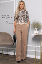 Брюки выполнены из вельвета. Прямые от бедра. Изделие на   поясе, со шлевками. Высокая посадка.   Функциональные карманы спереди. На задних половинках прорезные карманы-обманки.