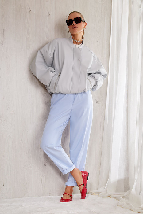 Летние укороченные брюки из фактурного хлопка , немного зауженные книзу. Брюки без застежки. Карманы в боковых швах. По талии декоративная резинка .