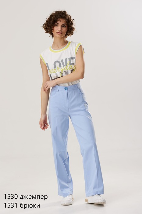 Брюки завышенной посадки из хлопкового полотна. На поясе в боковых швах карманы. Модель универсальная и может служить стильной базовой вещью в вашем гардеробе.