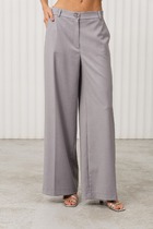Детали: широкие брюки-палаццо с небольшими складками у пояса и заутюженными стрелками, притачной пояс со шлевками, застежка на молнию и пуговицу, боковые карманы. Задние части брюк с вытачками и имитацией карманов.