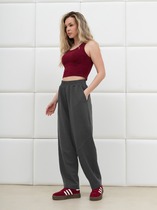 Длина брюк по боковому шву с поясом около 108,5 см в размерах 40-46 и около 109,5 см в размерах 48-52. Длина по внутреннему шву около 82 см