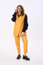 Спереди защипы, карманы в подрезных бочках и фигурные шлёвки на поясе. Сзади прорезной карман в рамку. Ремень в комплект не входит.