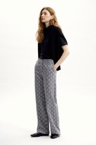 Брюки женские из плотного и мягкого хлопкового трикотажного полотна с изнаночным начесом. Карманы прорезные с листочками и молниями. Пояс брюк и манжеты из эластичного трикотажного полотна рибана. Пояс по линии талии регулируется шнуром.