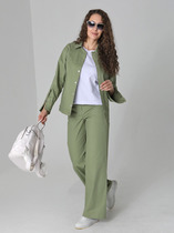 Брюки женские из трикотажной хлопковой ткани (двунитка), слегка заужены к низу. В боковых швах расположены карманы. По низу передних половинок есть защип. Задняя половинка брюк с отрезной кокеткой и накладными карманами. Вверх брюк обработан поясом с резинкой (без молнии). ПОЯС ВХОДИТ В КОМПЛЕКТ.