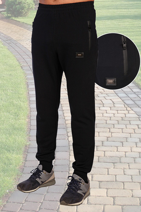 Брюки мужские из футера. Декоративный карман, нашивка, внизу на манжетах, две расцветки - серый и темно-синий