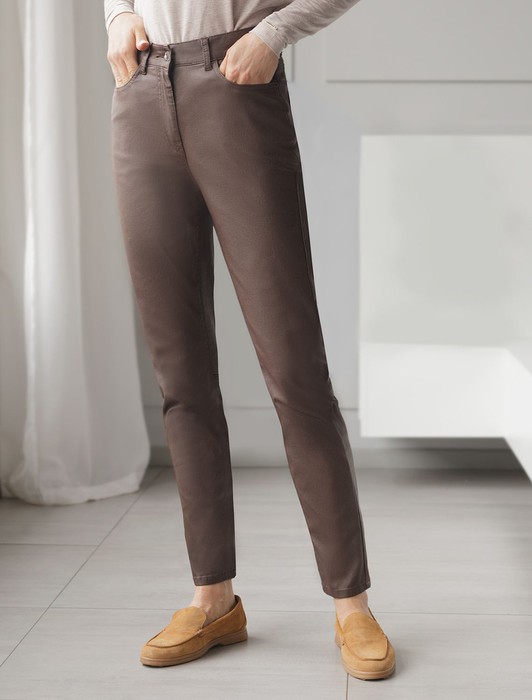 АКЦИЯ 8 марта! Брюки слим из эластичного хлопка с покрытием под кожу