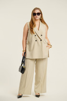 Эти уютные брюки пыльно-розового цвета созданы для вашего комфорта. Свободный прямой крой обеспечивает свободу движений и максимальное удобство в любых ситуациях, поэтому они подойдут и на большие размеры, а так же на высокий или низкий рост. Фигура подчеркивается, а силуэт визуально вытягивается за счет кроя палаццо и застроченных декоративных стрелок.