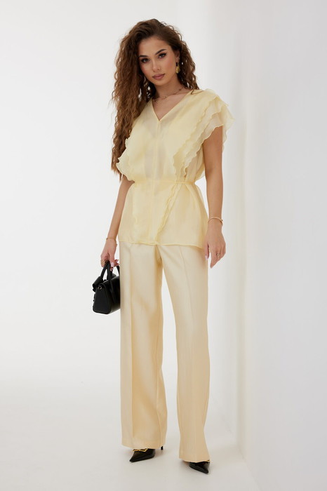 Брюки из костюмно-плательной ткани, прямые со стрелками, полной длины.