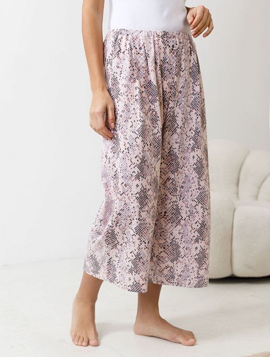 Комфортные укороченные широкие брюки кофейно-пудрового цвета на тонкой резинке из 100% хлопка – отличный выбор для отдыха и домашней носки. Эти свободные брюки обеспечивают максимальную свободу движений благодаря широкому крою. Эластичная резинка в области талии гарантирует удобную посадку и индивидуальное прилегание по фигуре. Защипы добавляют выразительность образу и помогают сформировать актуальный силуэт, подчеркивая современные тенденции. Принт в виде листьев добавляет оригинальности. Тонкая хлопковая ткань пропускает воздух, создавая ощущение легкости и свежести в теплую и жаркую погоду. Повседневные брюки подходят для больших размеров, мягко скроют возможные недостатки фигуры, подчеркивая комфорт и стиль. Домашние брюки кюлоты отлично сочетаются с разными вариантами верхней одежды, поэтому их можно носить не только дома, но и на прогулках. Удобные брюки созданы для тех, кто ценит комфорт и практичность без лишних деталей. Благодаря свободному крою и натуральному материалу штаны идеально подходят для по