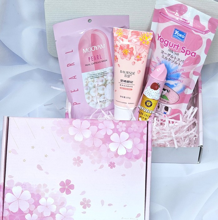 Совместные покупки Каменск-Уральский Косметика и парфюмерия Прочий макияж — Бьюти-бокс Розовые цветы (Скраб, Лосьон для тела, Маска, Крем для рук)