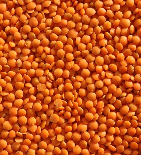 Красная чечевица. Разваривается быстро, оболочкой не обладает.Чечевица красная содержит много растительного белка, железа, огромное количество витаминов и микро- и макроэлементов: кальций, фосфор, йод, марганец, калий, цинк, кобальт, молибден, бор, витамины A, группы B. Она обладает стимулирующими свойствами, влияющими на обмен веществ, а также пищеварение (калоризатор). Чечевица весьма полезна организму и богата невероятным количеством полезных свойств, положительно влияет на нервную систему, желудок, сердце, мочеполовую систему.Из красной чечевицы можно приготовить множество блюд. Вот одно из них: суп из капусты с красной чечевицей.Ингредиенты:Красная чечевица – 200 г.Морковь – 150 г.Помидор – 450 г.Вода – 1.5 л.Репчатый лук – 100 г.Цветная капуста – 300 г. Промыть чечевицу, нарезать морковь и лук, поджарить в растительном масле. Цветную капусту подержать в солёном кипятке 7 минут. Чечевицу варить чуть меньше получаса, после добавить капусту в суп. Помидоры почистить, затем мелко нарезать, добавить в суп. Варить еще чуть более получаса минут. Перец, зелень и соль добавляются по вкусу.