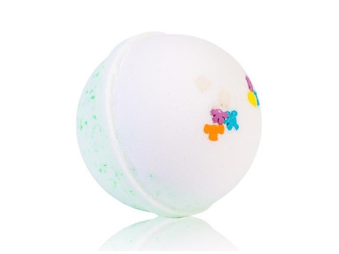 Состав: морская соль, натрия бикарбонат, магния сульфат, лимонная кислота, молоко сухое, масла: оливы, миндальной косточки, сои, льна; парфюм, декор сахарный кондитерский, пищевой краситель.