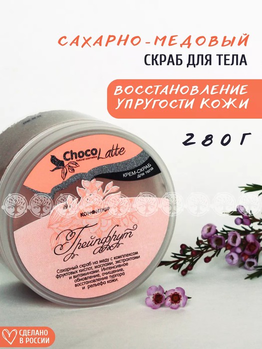 Совместные покупки Каменск-Уральский Хозтовары и личная гигиена Гели для душа, соли, пены для ванн — CHOCOLATTE Крем-скраб для тела сахарный на меду Конфитюр Грейпфрут