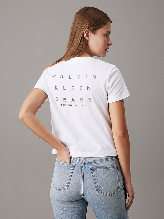 CK Lässiges T-Shirt mit Print am Rücken bright white
