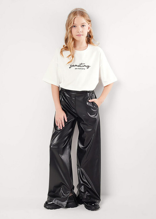 Стильные брюки из мягкой и приятной на ощупь экокожи прямого покроя - мастхэв гардероба. Комфортная и универсальная посадка, эластичный пояс. Сочетайте модель с любой футболкой, рубашкой или блузкой из новогодней коллекции.