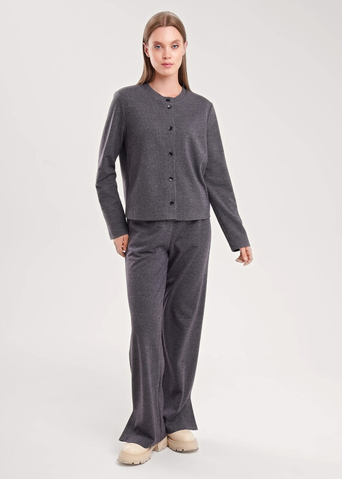 27.03 Vilatte Прямые брюки из фактурного трикотажа в рубчик D44.121 темно-серый