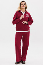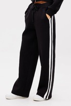 Брюки широкие из вискозного трикотажного полотна пике. По талии притачной пояс с внутренней резинкой. Боковые карманы с отрезным бочком. По переду и спинке защипы, внизу боковые разрезы.