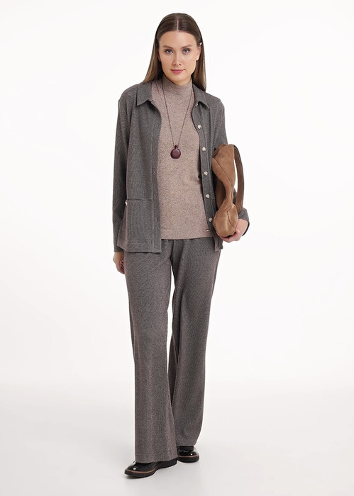 Широкие брюки из трикотажного полотна рибана с вискозой. Модель свободного, прямого кроя. Притачной пояс на внутренней резинке.