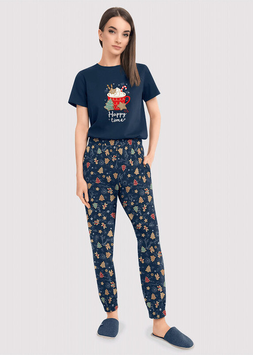 Clever Брюки женские для дома CLE LTR13-1068/1у т.синий/св.коричневый