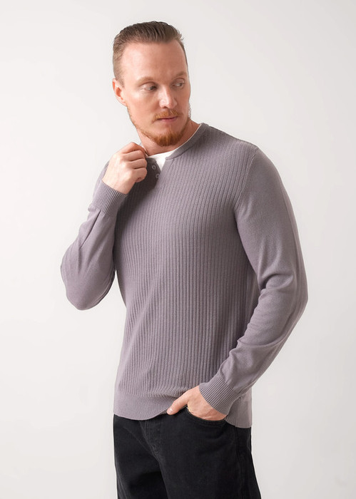 Джемпер мужской из смесовой хлопковой пряжи с длинным рукавом, планкой с иммитацией двойной горловины. Отличное решение на холодное время года. Данный джемпер можно комбинировать с брюками или джинсами. Прекрасно подойдёт для похода на работу.