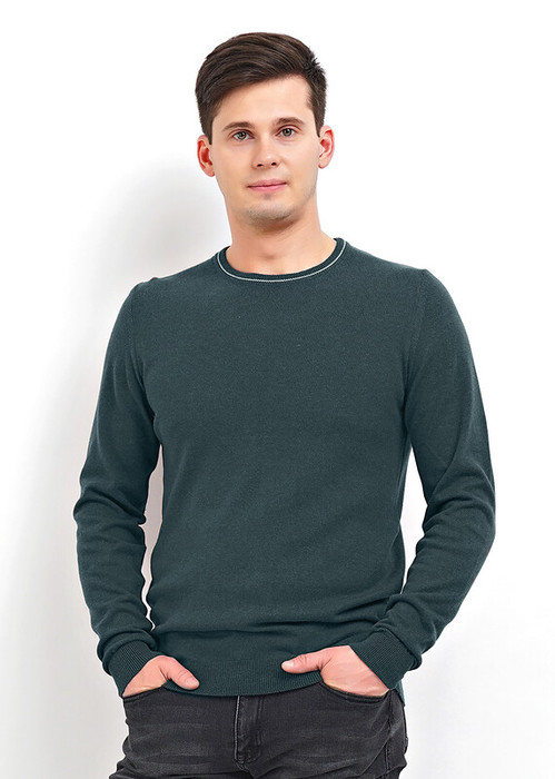Джемпер прямого силуэта с круглым вырезом горловины. По бейке горловины полосы контрастного цвета. По спинке стильная обтачка контрастного цвета из поплина . Изделие выполнено из натуральной пряжи. Хорошо смотрится с джинсами или брюками.