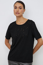 Вязаный джемпер прямого силуэта из акриловой пряжи с добавлением хлопка. Длинный втачной рукав. По низу рукава и изделия манжеты. Основное переплетение жаккард. Округлая горловина с бейкой.