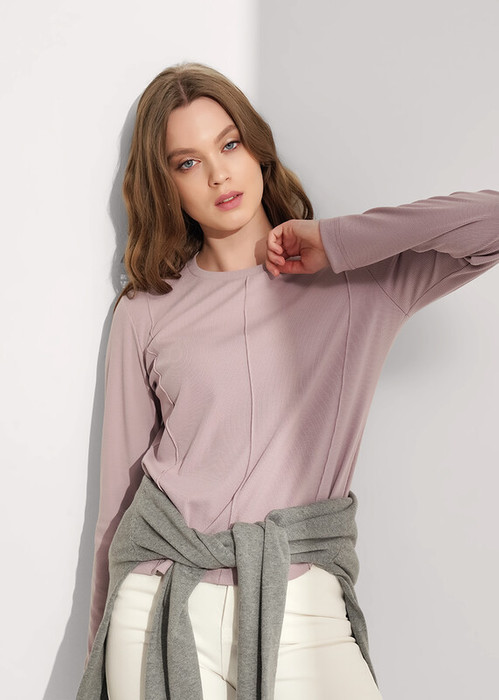 Фуфайка прямого силуэта из поливискозного трикотажного полотна кашкорсе. Втачной длинный рукав. Округлая горловина с обтачкой. По переду декоративные защипы.