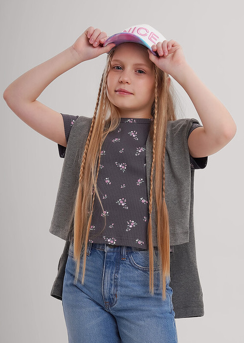 — Clever Футболка детская для девочки CLE 867268шлн т.серый/св.зелёный