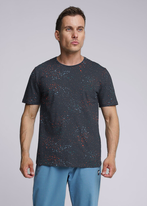 Стильная мужская футболка с круглым вырезом горловины и коротким рукавом. Изделие из приятного хлопкового полотна с эластаном в яркую авторскую набивку. Модель отлично подойдет к брюками или джинсам.