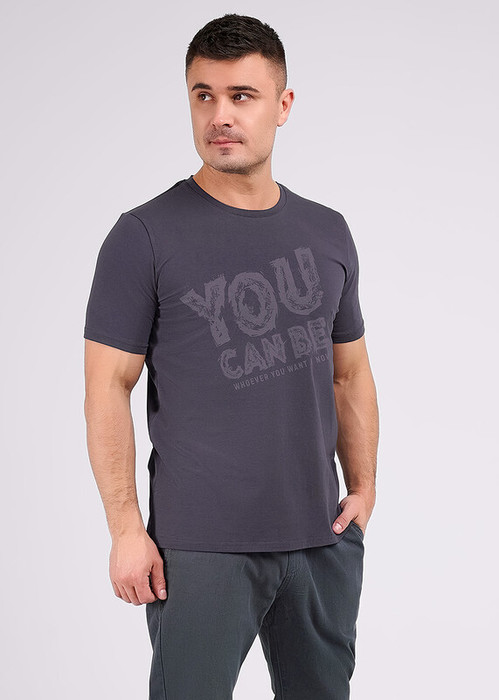 Мужская футболка из дышащего полотна с большим содержанием хлопка и минимальным добавлением эластана. Изделие дополнено абстрактным шрифтовым принтом. Отличный вариант для динамичных мужчин.