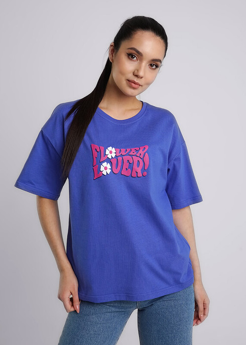 Джемпер оверсайз из хлопкового трикотажного полотна. Короткий спущенный рукав. Круглый вырез горловины обработан рибаной. По переду принт вспенкой.