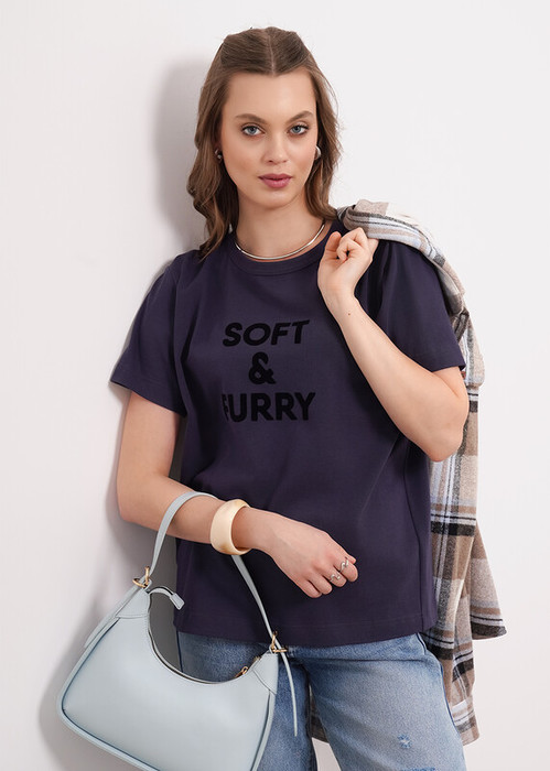 Футболка из хлопкового трикотажного полотна. Округлая горловина с окантовкой. Короткий рубашечный рукав. По переду принт пленка.