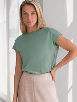 Джемпер умеренного объема из хлопкового трикотажного полотна. Втачной короткий рукав. Округлая горловина с окантовкой.