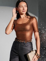 Джемпер умеренного объема из хлопкового трикотажного полотна. Втачной короткий рукав. Округлая горловина с окантовкой.